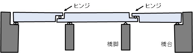 連続橋の主桁の途中にヒンジを設けて静定構造とした橋梁である。地盤沈下の想定される都市部に広く用いられている。