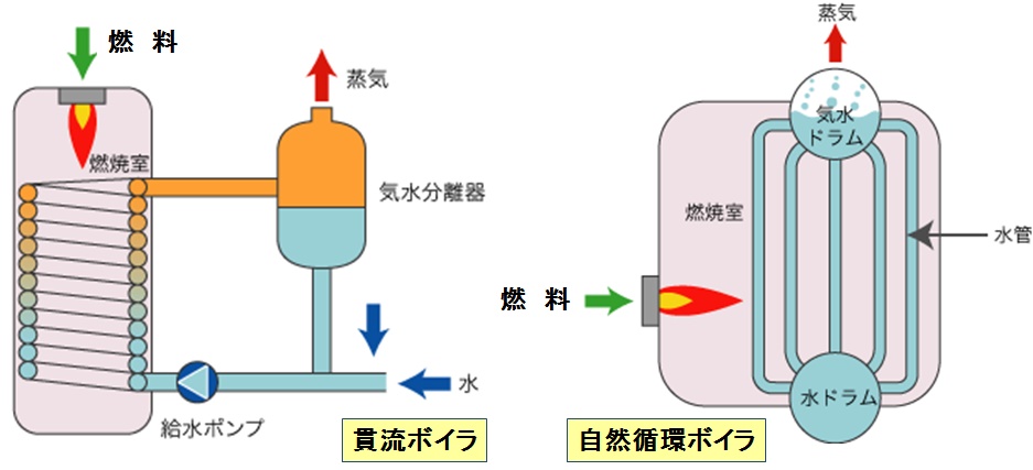 ボイラは,その構造により,基本的に水管ボイラと丸ボイラに分類される。