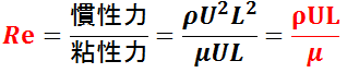 レイノルズ数とは,流体の慣性力(inertial force)と粘性力との比で定義される。
