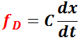 減衰係数 C のダッシュポットの場合には,ピストンの運動速度に比例するので, 次式で与えられる。