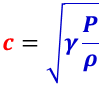 気体の定圧比熱容量と定積比熱容量の比である比熱比 γ,気体定数 R ,気体温度 T ,気体の平均分子量 M ,気圧 P ,気体の密度ρとした時の乾燥気体中の音速 c は,